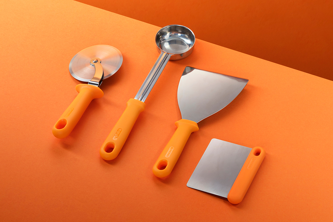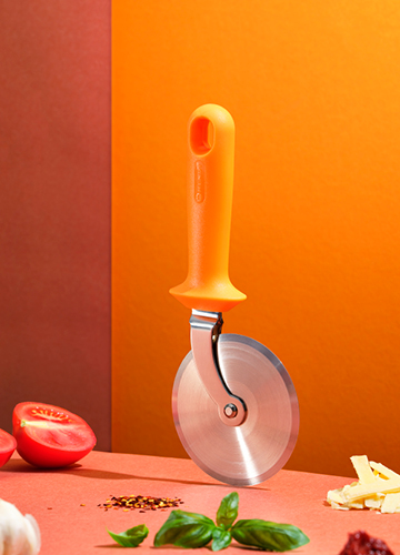 For Hendi, Bronwasser designed a series of pizza tools. The collection features a distinctive orange handle, with ergonomics as the guiding principle behind its shape. Designed for comfort, control, and performance. Buon appetito!